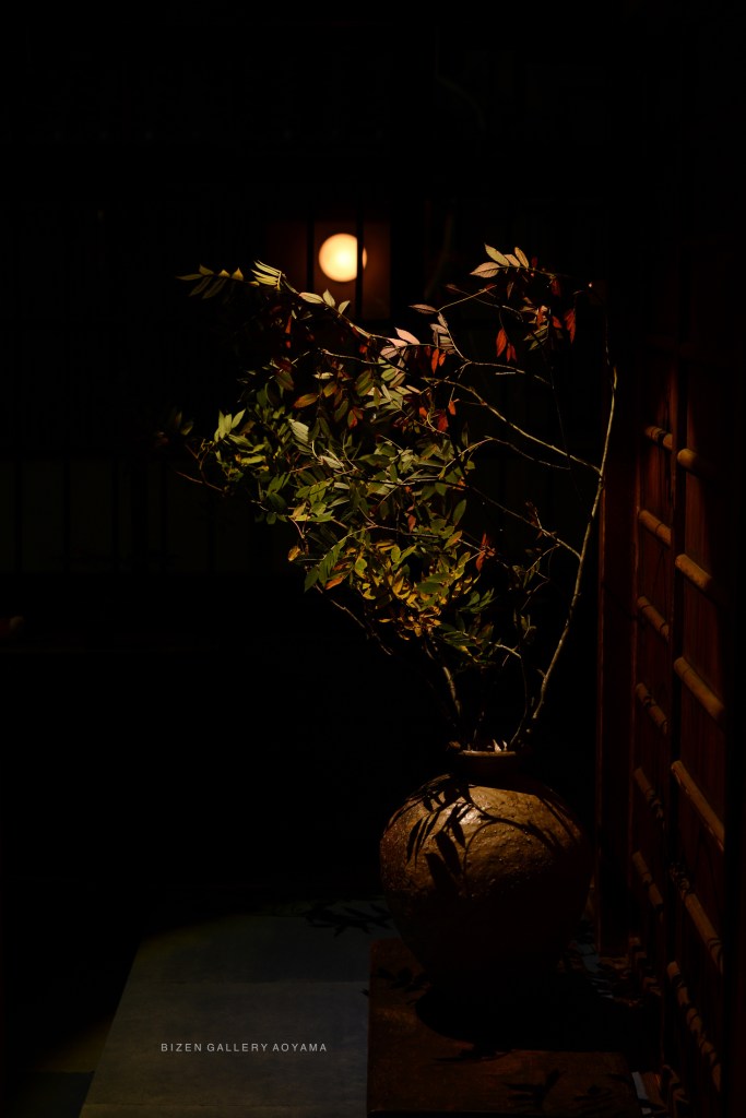 Yesterday I went to the Raku Museum on the same street. Special Exhibition Three Generations of Tamamizu Ware The work of the first Mr.Ichigen was really wonderful. It is a Aka Raku Chawan named "Shomen"(笑面). It was a truly memorable chawan. I also liked the work named "Tatsuta". The Chawan named "Yamazato" made by the 4th generation of the Raku family was also wonderful. I think that people who make Chawan should go to see it. I went to a flower shop on my way home. Rowan was already on sale. (It's still very hot) Next weekend is already the beginning of autumn in the calendar. The front door light of the opposite house looks like a full moon. (The Shigaraki Tsubo was shot from the side.)