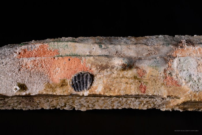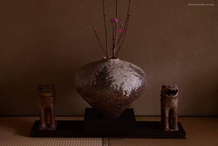 The clay is rougher than Bizen, but the cheerful scarlet and emerald green jewel-like beautiful beadro are very attractive.