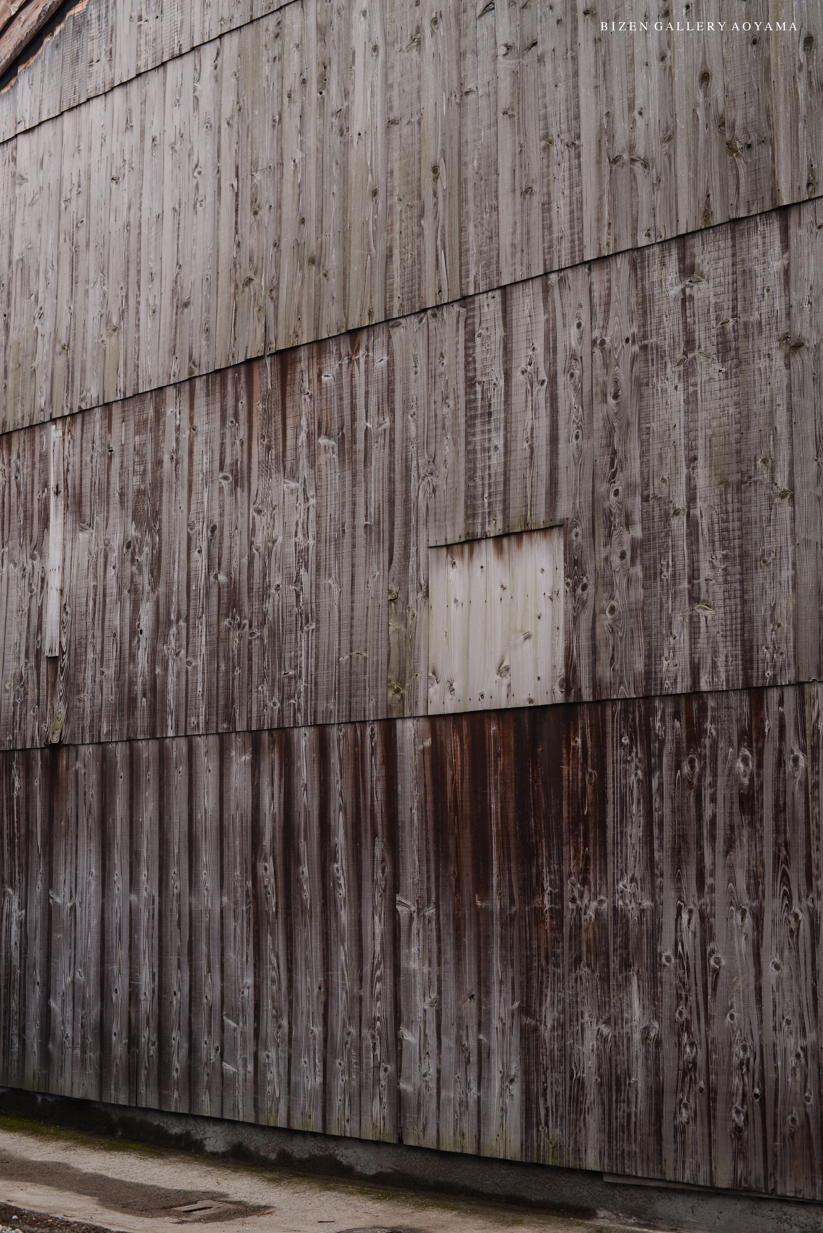 The side wall of our gallery. I like this atmosphere. The adjacent house was demolished so that the wall is now clearly visible. There are many Machiya in the city, but there are few machiya with boards on the sides. I want to install a hanging flower vase on this wall (joke).