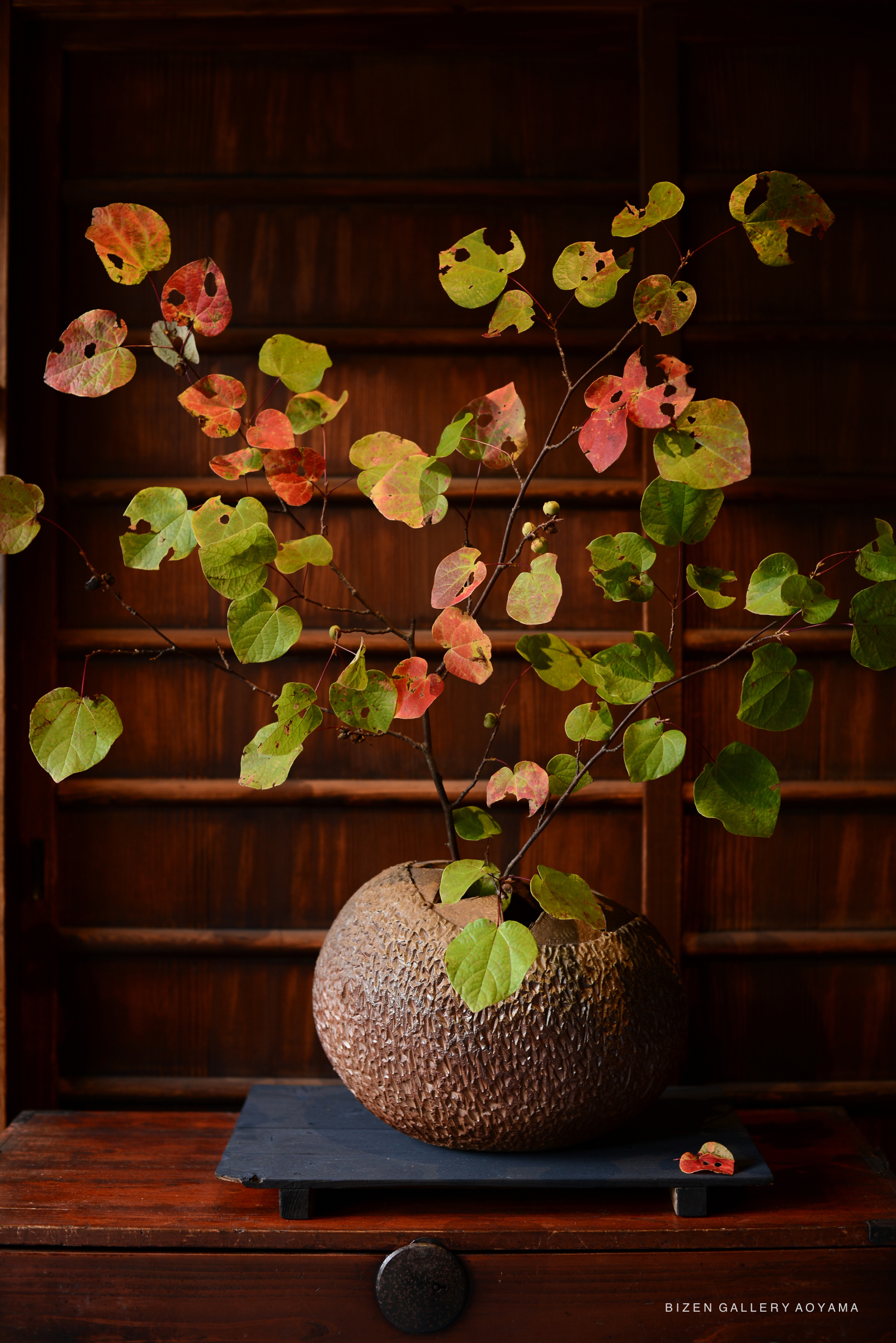 I never get tired of watching the changing colors of the leaves, the appearance of the holes eaten by insects, and the way they fall each day. Sometimes the seeds pop and fly away. I want to enjoy the natural changes without making any changes. It is a blessing to be able to appreciate the beautiful life of plants in their final moments and enjoy life in this way.